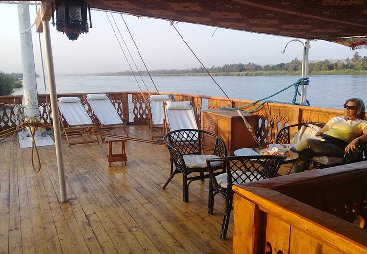 The first travelers looking for luxury on the Nile, added comfort measures to the felucca, a wooden boat with its handmade genuine sails, to give the new version, DAHABIYA “golden boat”, name given by a monarch in the 19th century. With Dahabiya avoid the noise of the 20 century and allows us to explore Egypt of the 19 century with modern facilities. Dahabiya is a famous name among the Egyptians, especially the elderly and intellectuals.